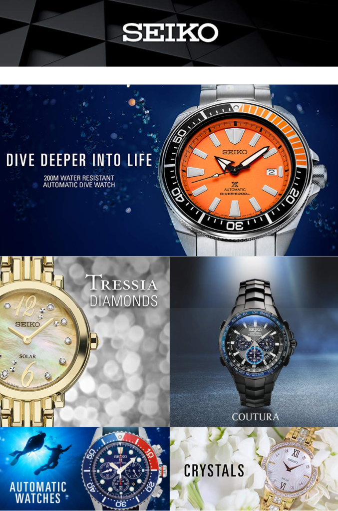 The Japanese watchmaker uses high-quality product images of their watch range which includes watches for both men and women.